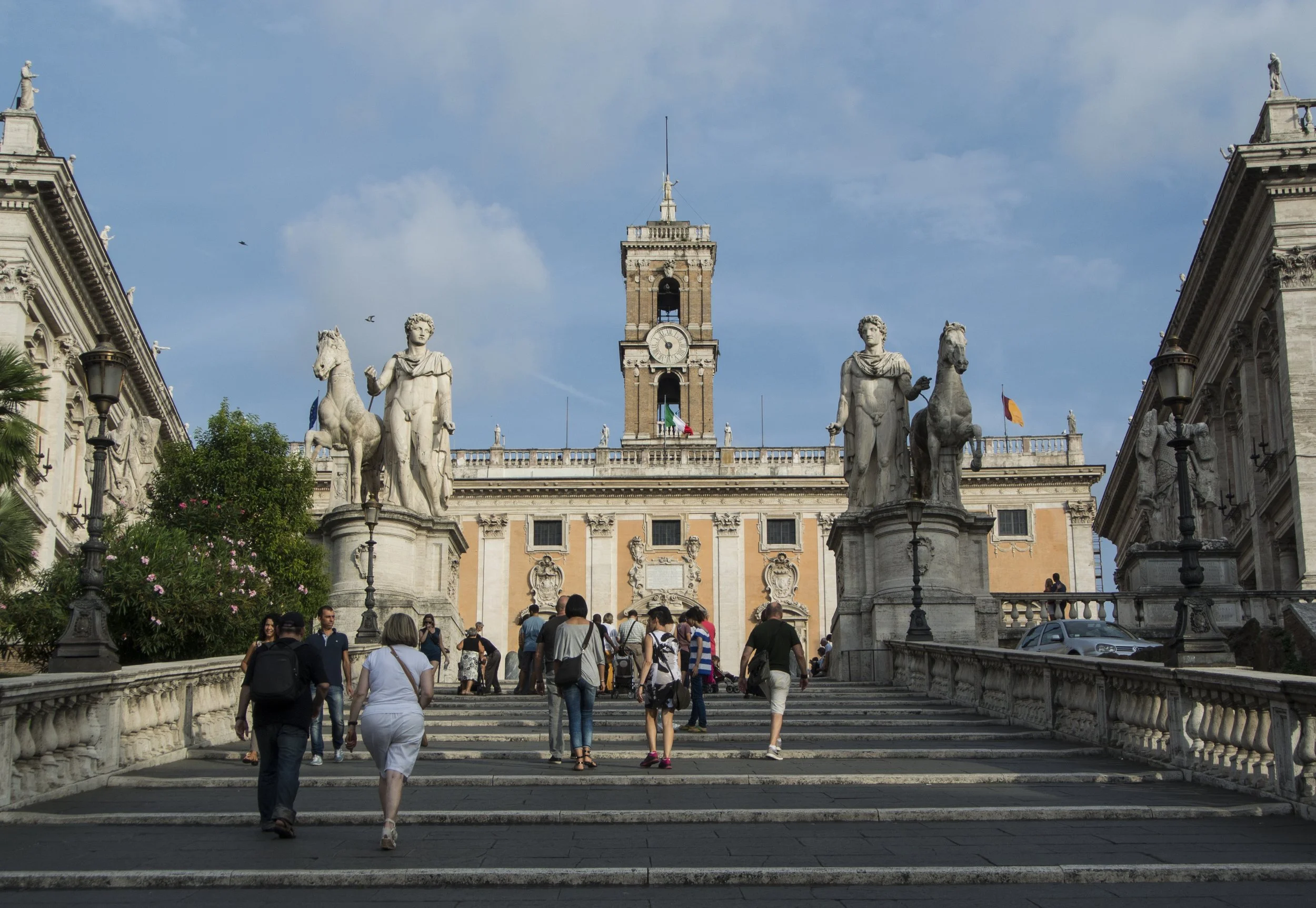 We decided that some lunch was in order and couldn’t pass up the opportunity for some genuine Italian pizza. Angela googled the area and determined that there was a recommended pizza place not far away. It was a bustling sort of a place, and we were given a seat in front of their drinks fridge. When another table opened up, we offered to move, but our waiter told us it was good for him for us to be seated here (we weren’t sure if that was because it was an easier table to get to or because we were easier to look at). There were definitely a few admiring looks from the wait staff, but we happily drank our half liter of wine for 2.50 euros and awaiting our meal. We went with an antipasti platter again, roasted vegetables mostly, and shared a mushroom pizza. Super thin and crispy crust, tasty sauce and cheese, it was a delicious introduction to Roman pizza. To top it all off, we were given 2 complimentary shots of limoncello, which sent us off with a nice warm glow. We giddily made our way out and down the street.