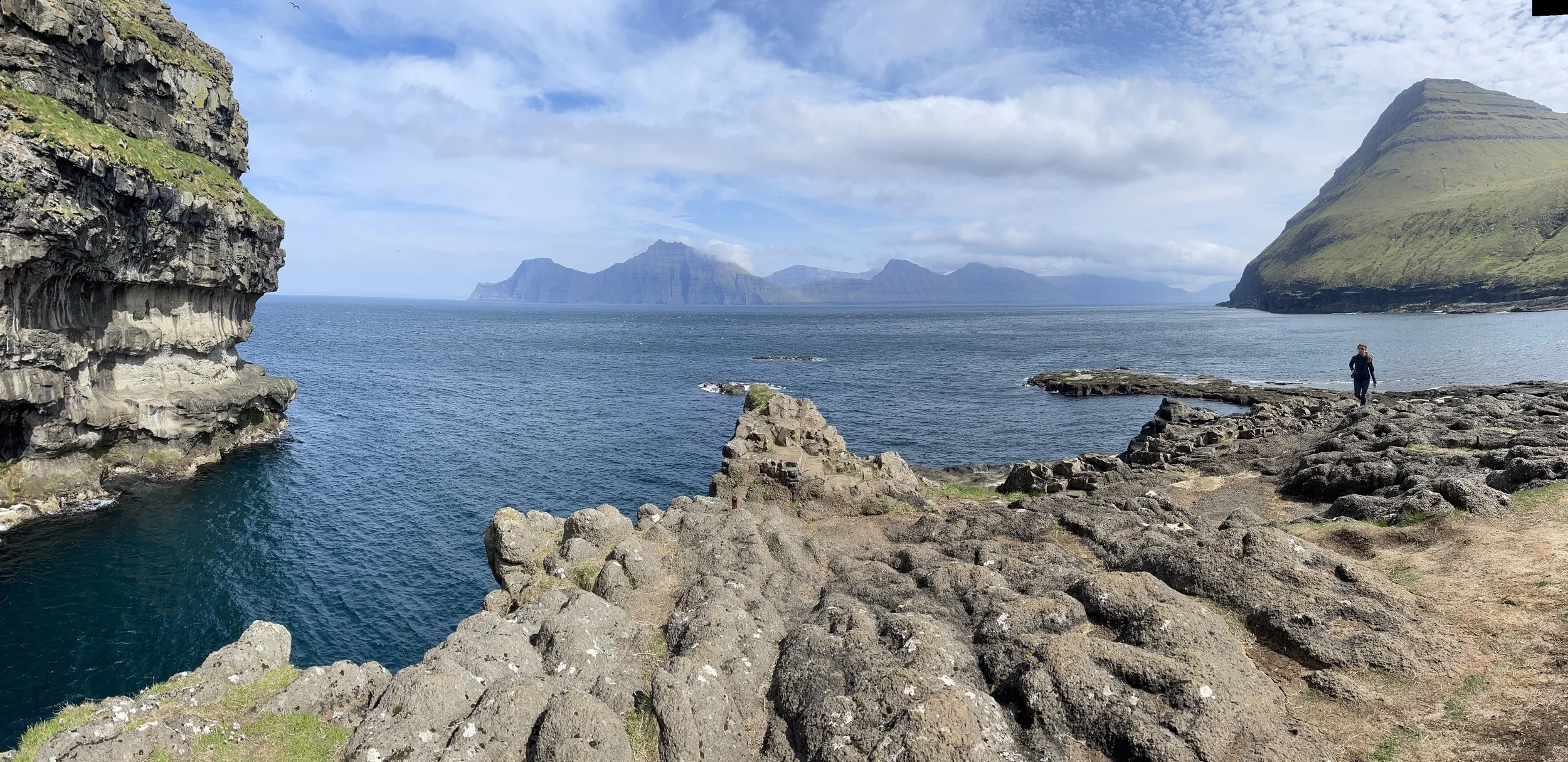 By some witchcraft, the notoriously rainy and foggy Faroe Islands were not playing true to form. We took advantage of the gloriously sunny skies by journeying to Eysturoy, the second largest island in the archipelago. It was a beautiful, scenic coastal drive, with a multitude of pull-outs for us to ogle the mountain views and inlets.