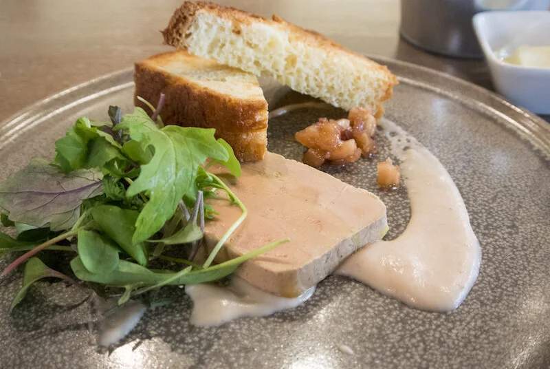 Beautiful sunny skies greeted our day in Quebec City, and we treated ourselves to yet another leisurely morning of puttering around our apartment. Our host had recommended a bistro up the street, and after a bit of poking around, it looked like a promising spot. We headed over and grabbed a pair of seats at the beautiful bar surrounding a spacious kitchen area. Bistro B had a great modern feel to it–sleek lines warmed up by some interesting wood panelling behind the bar. Our waiter, either because he couldn’t or didn’t want to speak English, stayed almost exclusively in French, which gave David (and me) the opportunity to work on our French.